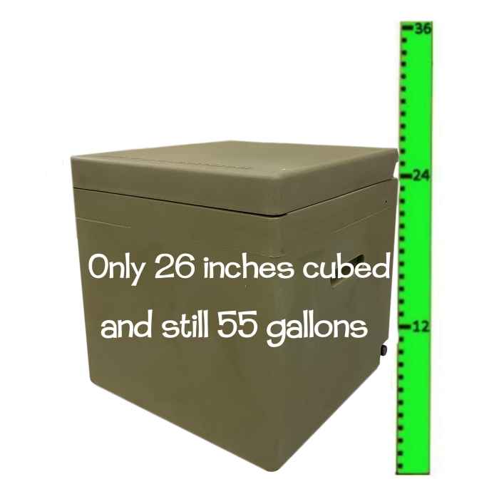 • 26″ 55-gallon all-inclusive Cube tank